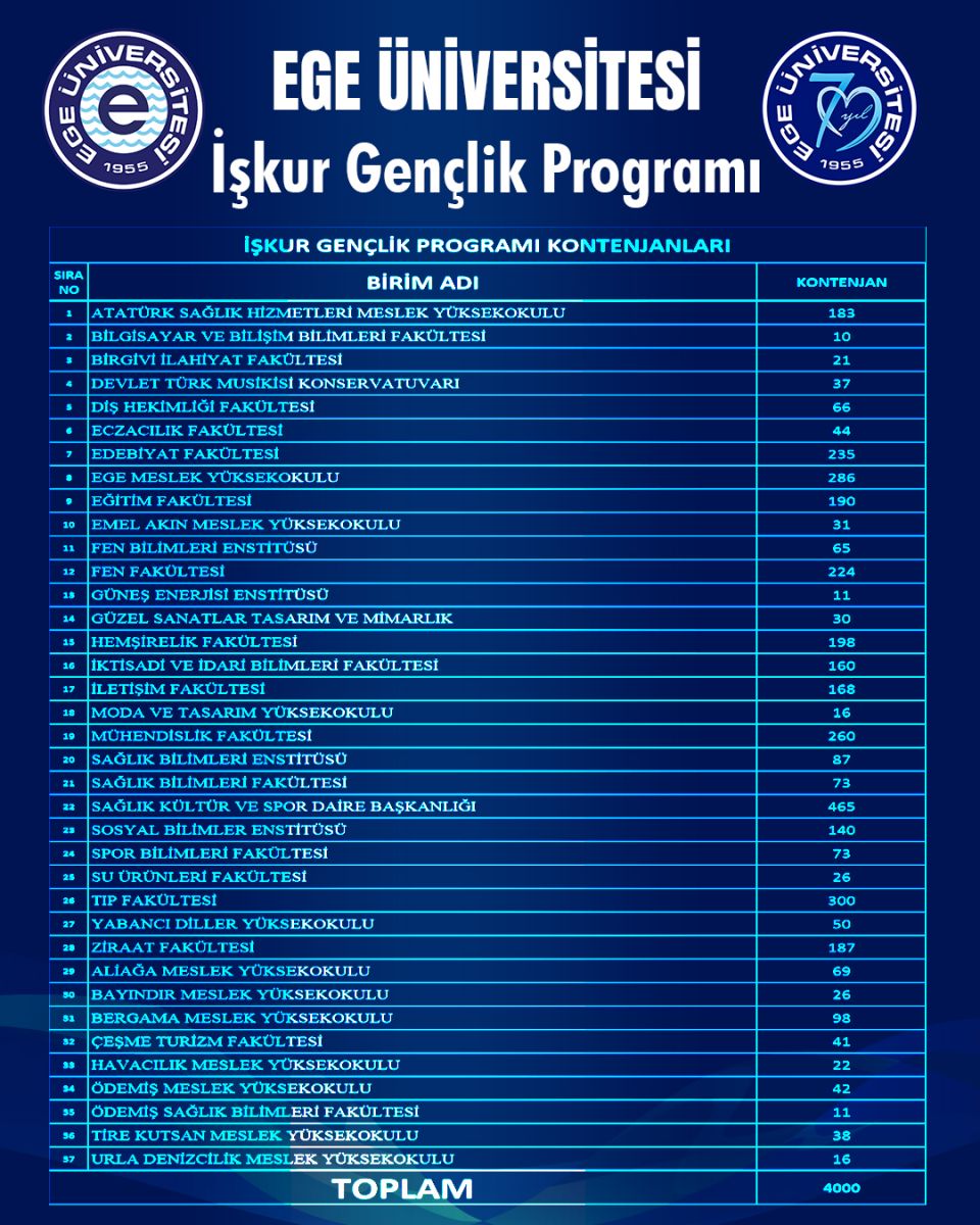Ege Üniversitesi İŞKUR Gençlik Programı kapsamında Noter Kura Çekilişinde çalışmaya ‘’ASİL’’ olarak hak kazanan Katılımcı, 6-7-8-10-11 Kasım 2025 tarihleri arasında başvurduğu birime ‘’Başvuru Belgelerini’’ teslim etmek zorundadır.